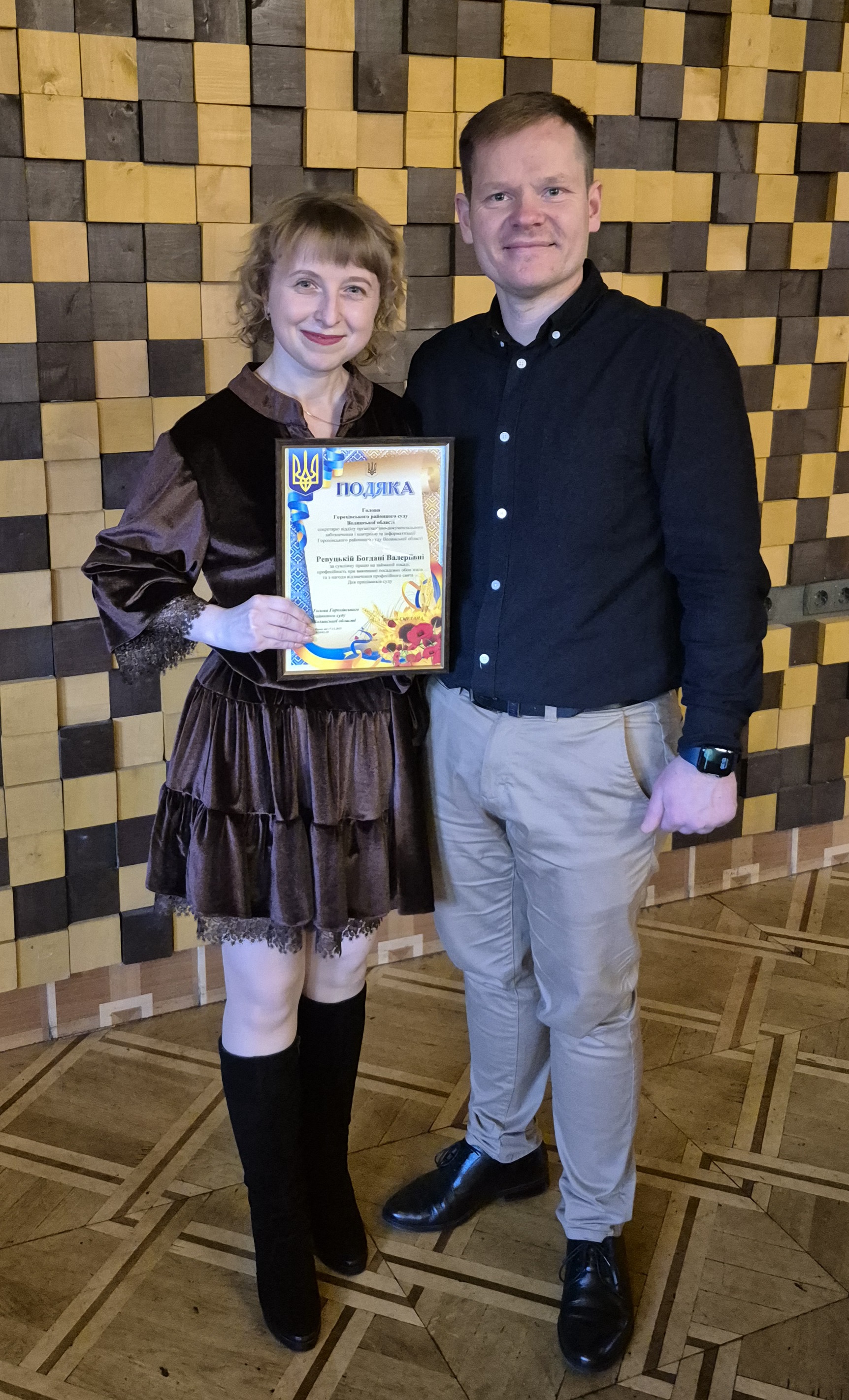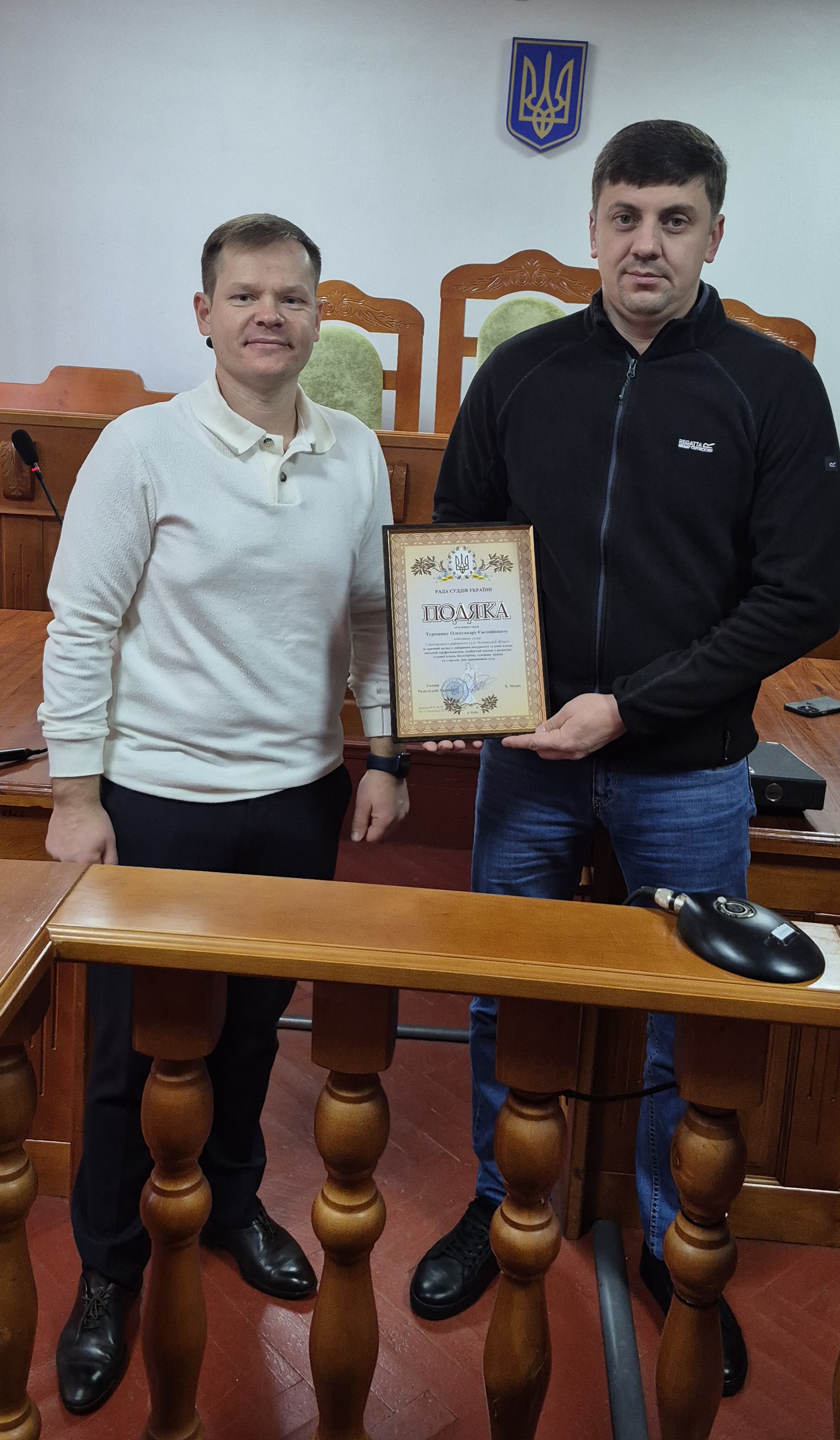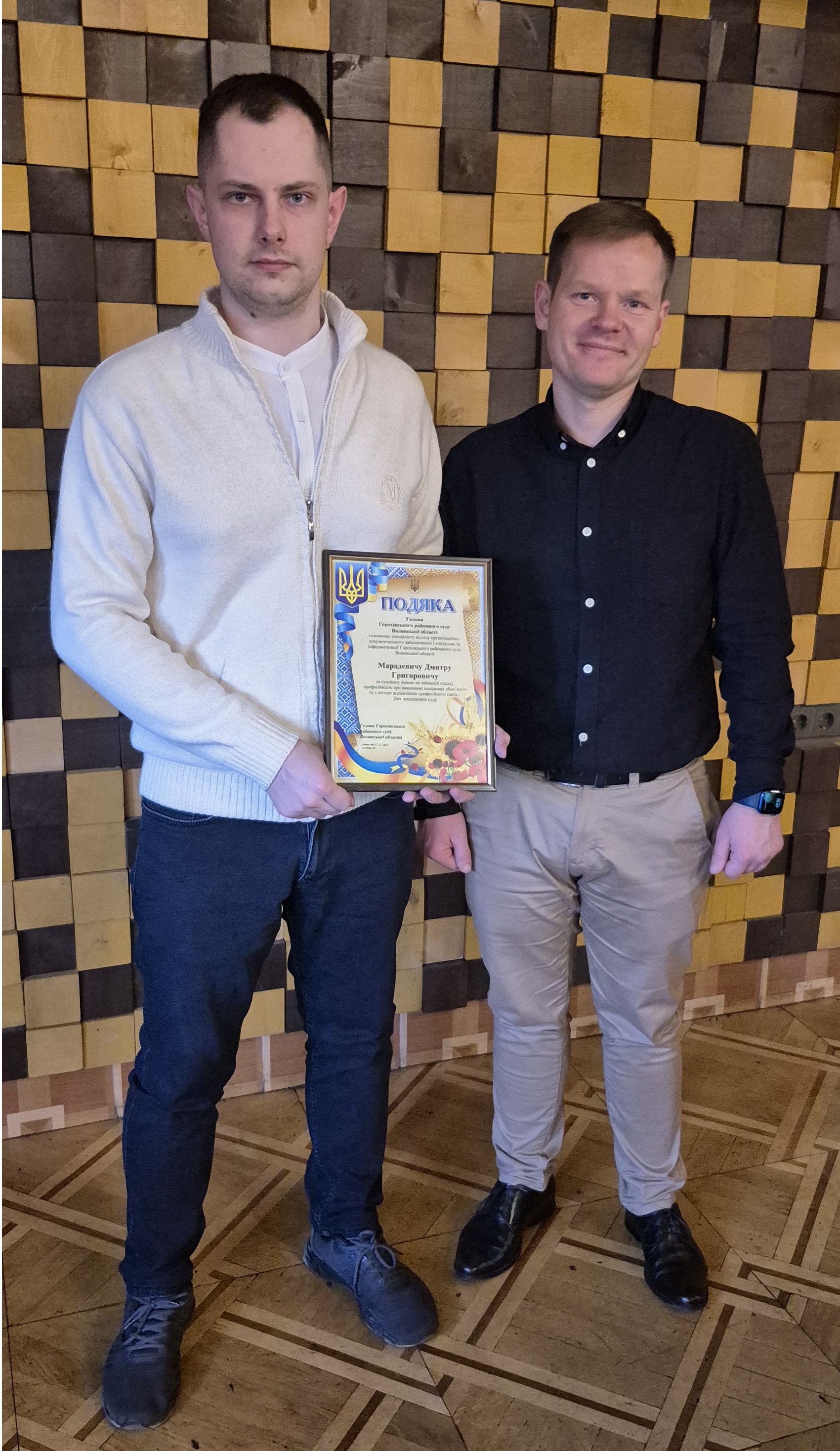 ___З нагоди професійного свята – Дня працівника суду відзначено Подякою Голови Горохівського районного суду Волинської області секретаря відділу організаційно-документального забезпечення і контролю та інформатизації Ревуцьку Богдану Валеріївну та головного спеціаліста цього ж відділу – Марадевича Дмитра Григоровича, а також відзначено Подякою Ради суддів України помічника судді Туришина Олександра Євгенійовича.